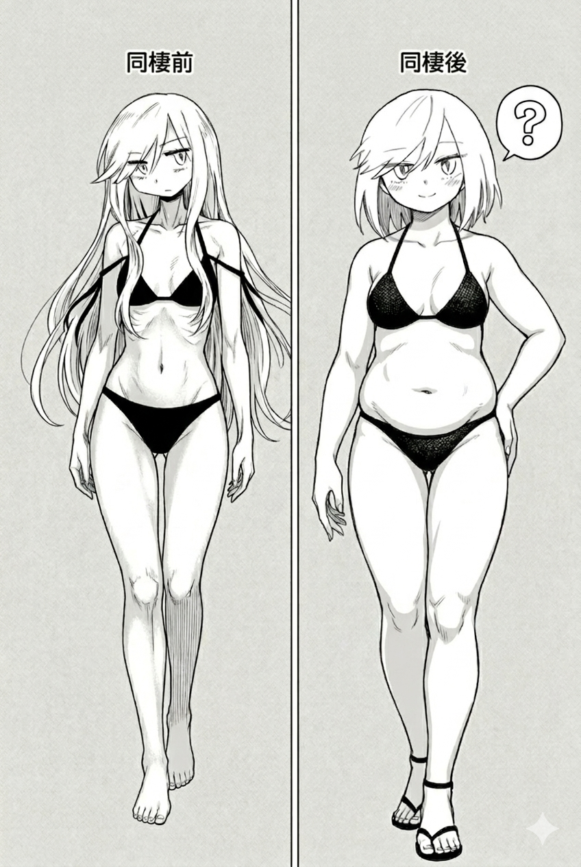 カリカリ女さん、同棲してデブデブ女になってしまう…